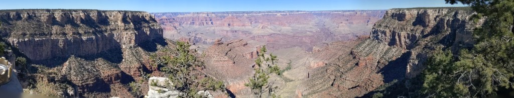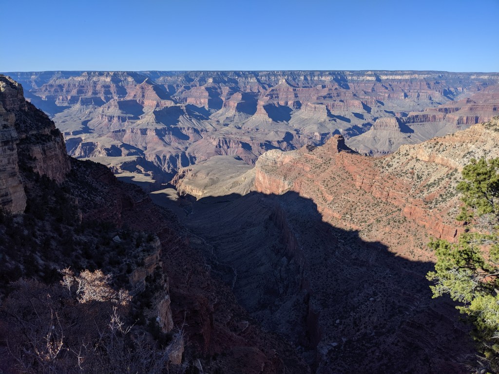 Park at the visitor center (lots 1-3) and walk over to Mather Point. From there, walk west on the Rim Trail to Yavapai. This is a really cool stop with awesome depth and perception. In our opinion, this point was better than Mather Point. You can visit an geology museum there that also provides some cool views. From there, hop a shuttle to or walk down to Yavapai Lodge. They have a nice restaurant there as well as a cool entrance area that is very rustic with a small gift shop. Next, hop the shuttle to the El Tovar Hotel, where there is a food court for some cheap eats. Finally, you can hop the shuttle back to where you parked originally. The shuttles run every 10-15 minutes during normal operating hours and are quite easy to utilize.