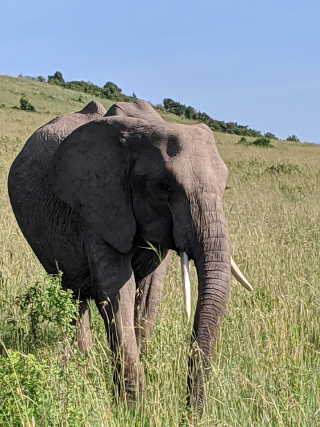 After a while, it was time for the elephants to start moving to a new area, and it was no different for us in our mystery machine. Our driver cranked on the engine, backed up a bit, then “BAM!” Our back right wheel had fallen in a very large and deep sinkhole! Now, this was the only time I regretted not being surrounded by other vans. We were out in the middle of the grasslands alone. Oh, and I never mentioned, his radio was broken, so he could not radio for help. Luckily, his cell phone had service and he was able to call for help. Another van showed up and played bumper cars with us, pushing us from the front. It was a wild and wacky moment, but we did get out of the very deep hole. I waved to China as we drove beside the giant hole, and off we went for more adventure!