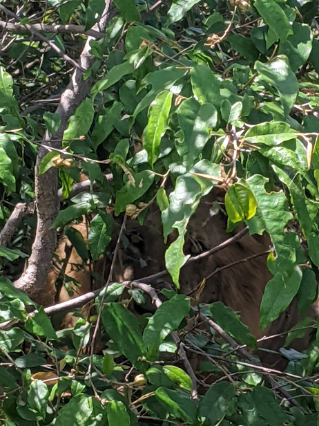 A big five sighting was upon us: the water buffalo! He was huge and rather uninterested in our presence. By the way, can someone tell me why the water buffalo is one of the big five and not the cheetah or the giraffe? Anyway, shortly after that sighting, we saw the big five star we were pining for: the lion! A lioness was shading herself in some bush. She was such a beauty! It really looked like she had eye liner on. She was only about two feet from our vehicle. It was the closest I had ever dreamed of being to a lion. She really did not seem to mind our close proximity. She was looking at us rather curiously, however. She had another lioness laying right next to her. The other one was clearly sleeping.