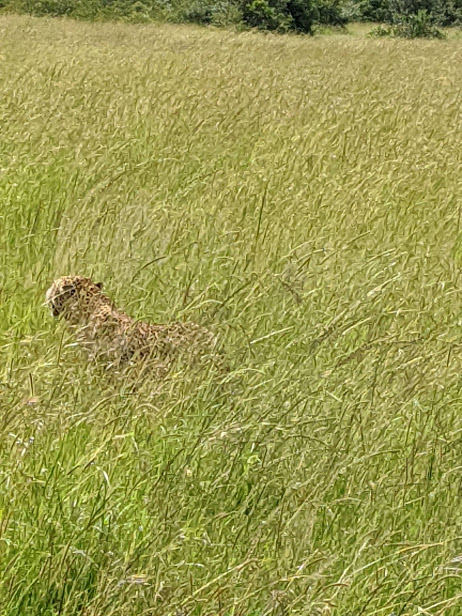 On our drive back, we were speeding a bit. All of the sudden, our driver screeched to a stopping halt. We turned around. We started off roading. “What is going on?” we screamed. “A cheetah!” we heard. Well, we saw a cheetah before, but cool. Guess we are on cheetah chase! As we got closer, we saw a myriad of vans behaving like bees in a beehive. We looked into the grass. It was not a cheetah at all, but a leopard! The leopard is one of the most difficult of the big five to see, and we saw it! It was huge, muscular, and majestic. It was very cool to see! However, I felt really sad as I watched all the vans buzzing around him as he was walking through the grass. Even though he did not seem to really mind, I felt like we were not being respectful of his space. At one point, five vans encircled him! This made me realize that I was part of the problem. There has to be a better way for us humans to observe nature! Our whole van felt badly for this leopard. Luckily, he quickly disappeared into the bush. After that, it was back to Miti Mingi camp for a final night with the bat in our bathroom.