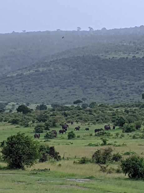 We ended up turning up a large hill. We could see some large silhouettes in the distance: elephants! We zoomed alongside them, just reveling at their distant beauty. Suddenly, we saw even more, but this time, much closer. Our driver stopped and cut off the engine. We stood up to realize we were completely surrounded by a herd of at least 50 elephants. I was definitely tearing up. As streams rolled down my joyous face, I saw at least a dozen baby elephants wandering around in the herd. The smallest were staying really close to their mothers while the older juveniles were playfully running and sounding their trumpets. The elephants kept getting closer and closer. At one point, they were about four feet away from our van. This was truly one of the most magical moments of my life. Just being out there, surrounded by one of my favorite creatures in all the earth. Seeing them in their natural habitat was just amazing.