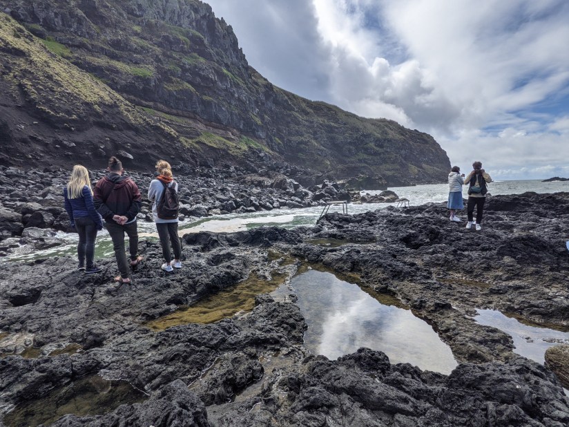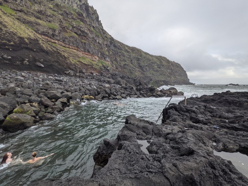 The first is a natural wonder where the hot thermal water meets the sea. It is called Ferraria. The most important thing about going to Ferraria is to check the tides online. We ended up getting the tide times confused. If it is high tide, the water will be freezing and very violent in current. Be sure to go at low tide. Keep in mind that the ocean is coming into this small cove. If you are not a strong swimmer, be sure to utilize the ropes. Even holding onto the rope, I was being pulled in every direction by the currents. However, that feeling of hot and cold is really unique and awesome! It is totally worth the visit and dip. They also have facilities there were you can get dressed. One word of caution for the acrophobic: the drive down and back up is harrowing to say the least. If you have any doubts, you can always park up the mountain and then hike up and down in about 20 minutes.